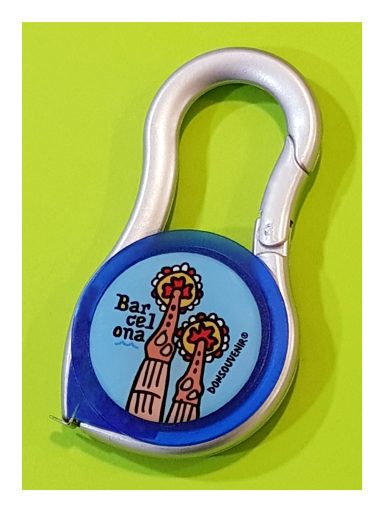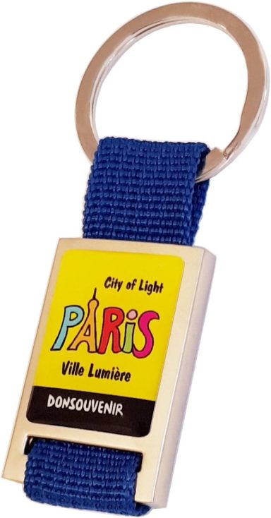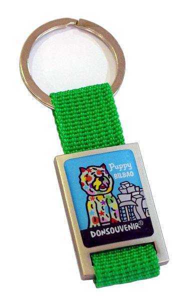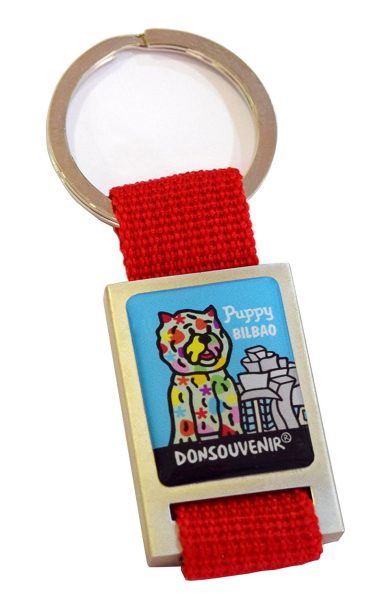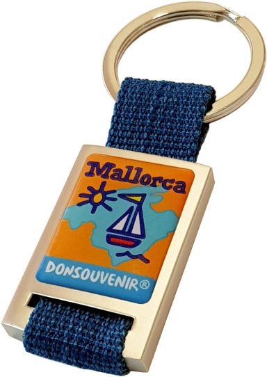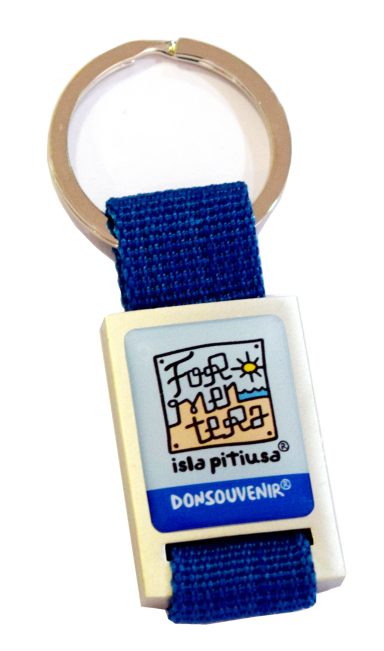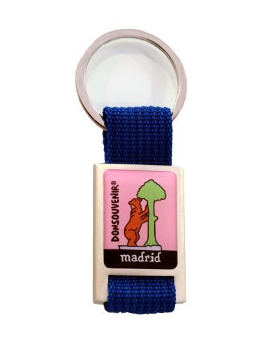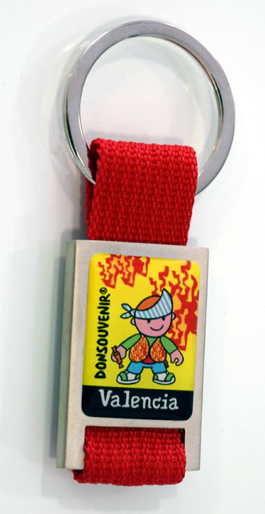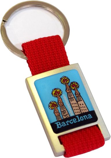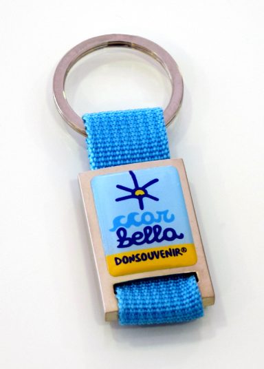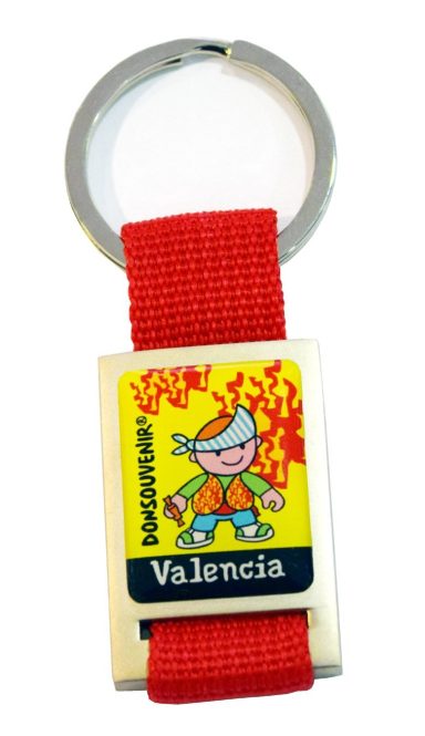 Llaveros metálicos con tira textil e ilustración en resina. Llaveros con cinta metrica. Llaveros linterna...